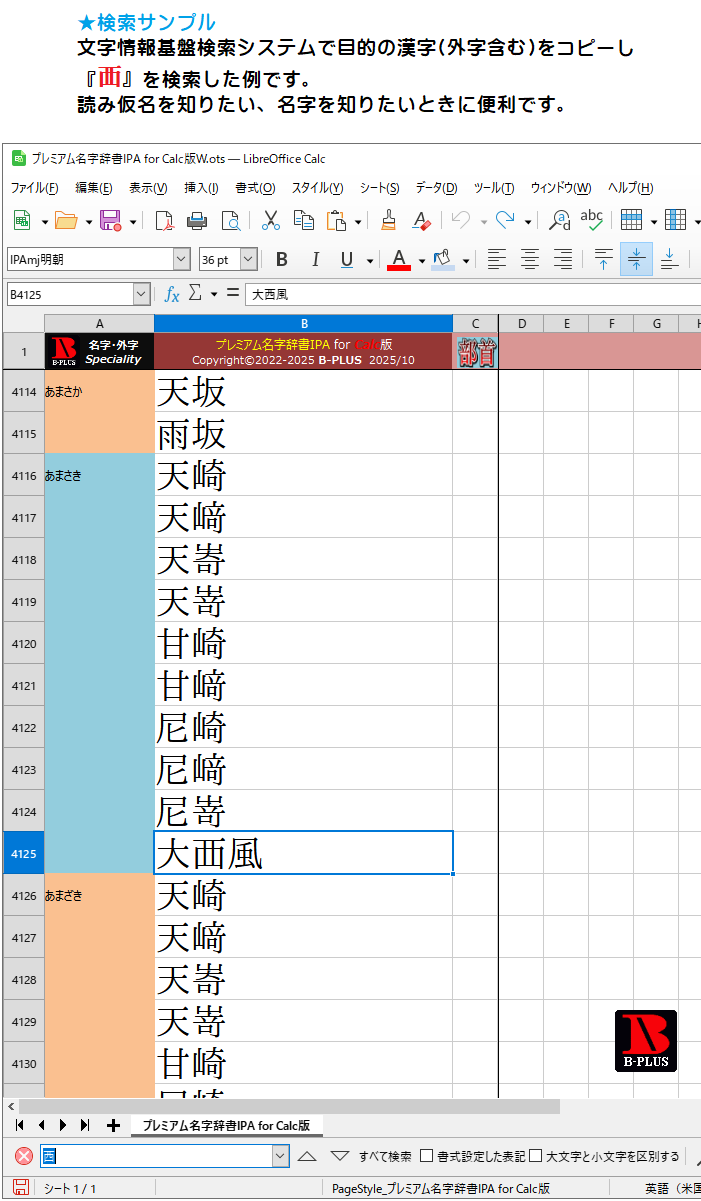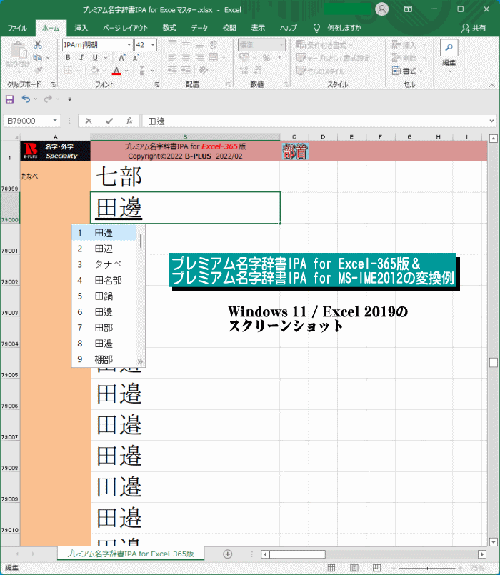 | プレミアム名字辞書PLUS-IPA for Excel-365/LibrerOffice) |