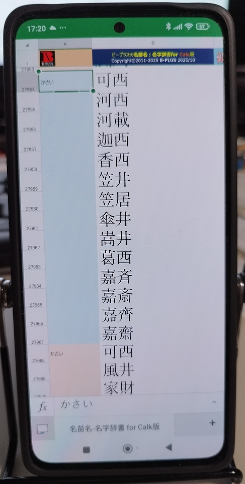 表計算ソフトの強力な検索で逆引きも可能です。部首引き有